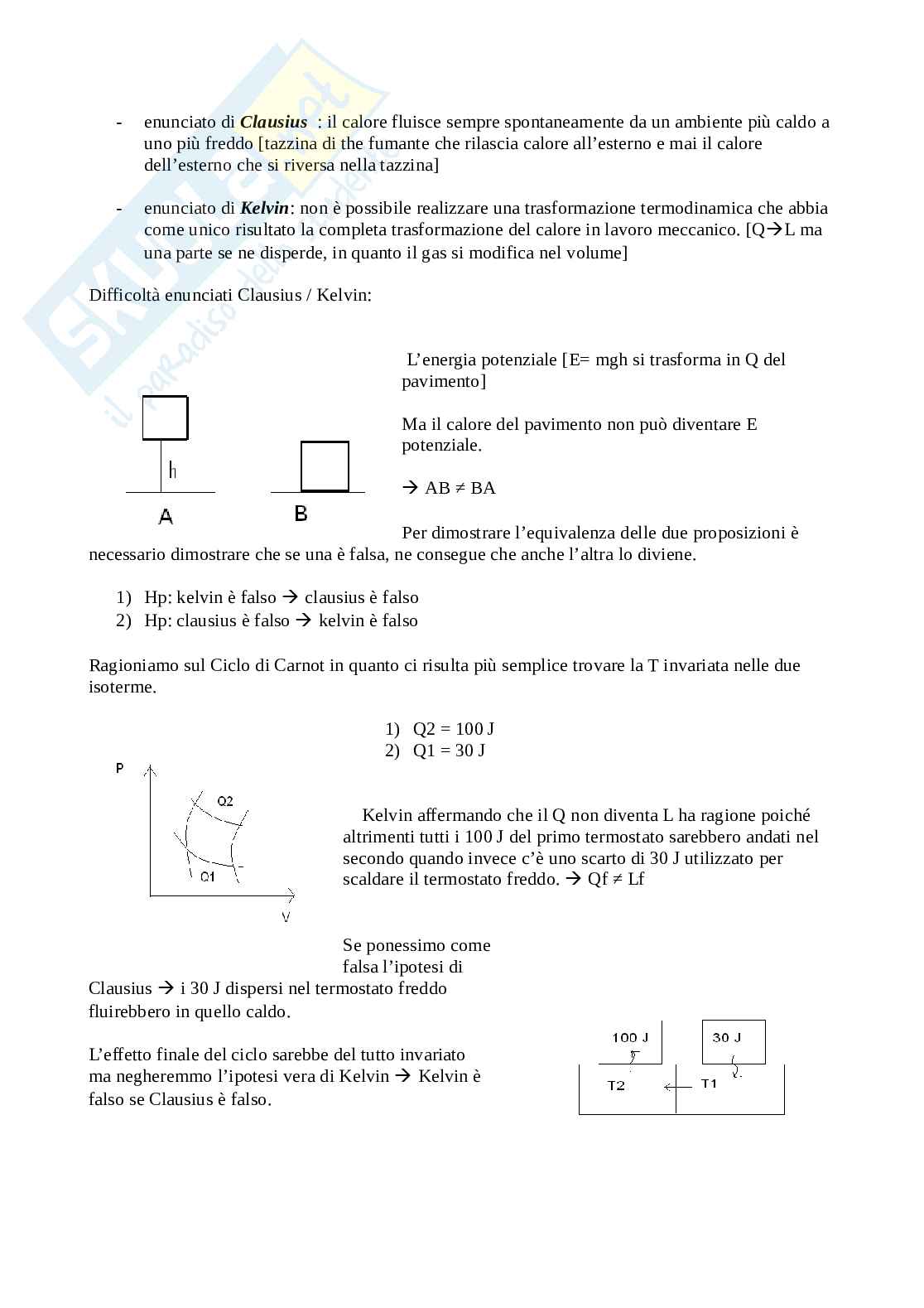 - enunciato di Kelvin: non è possibile realizzare una trasformazione termodinamica che abbia