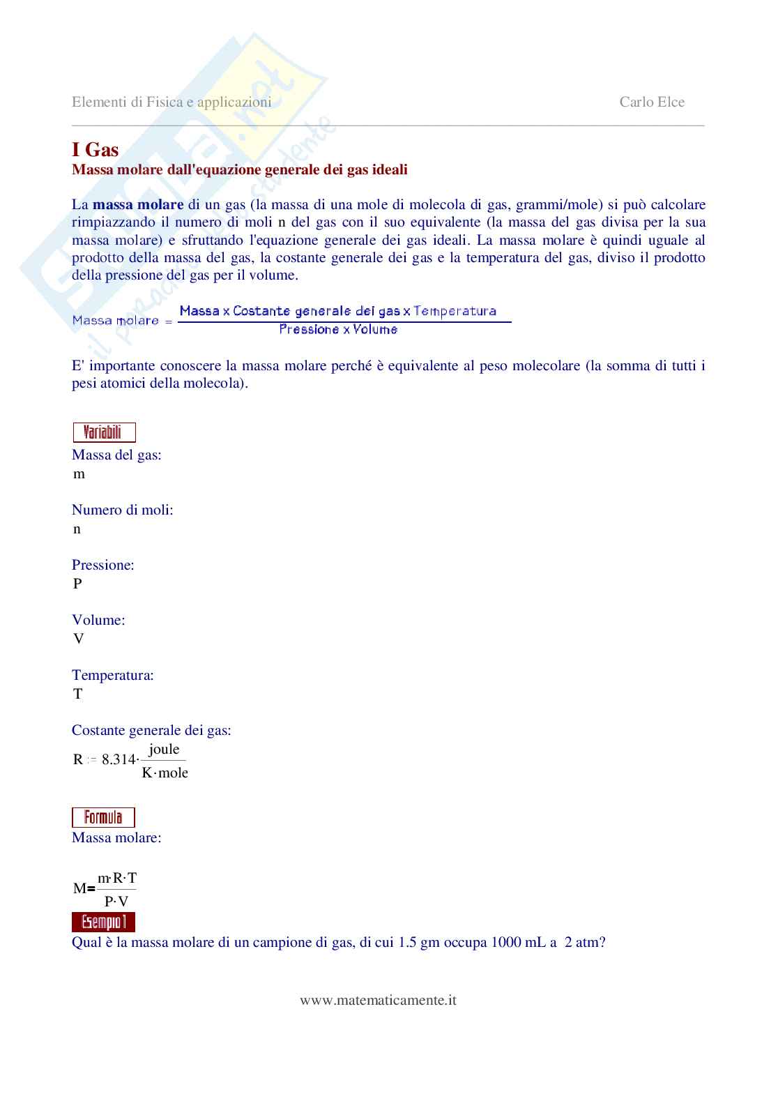 La massa molare di un gas (la massa di una mole di molecola di gas, grammi/mole) si può calcolare