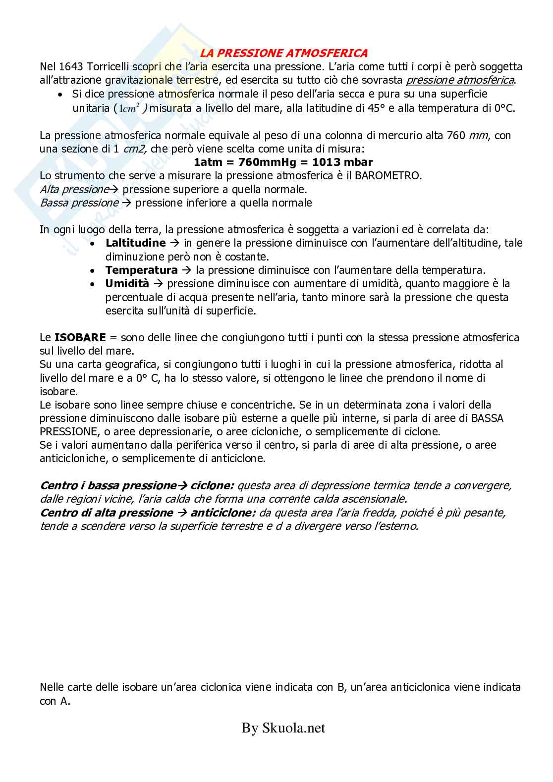 - esterne di maggiore pressione verso aree centrali dove la pressione è più bassa. La