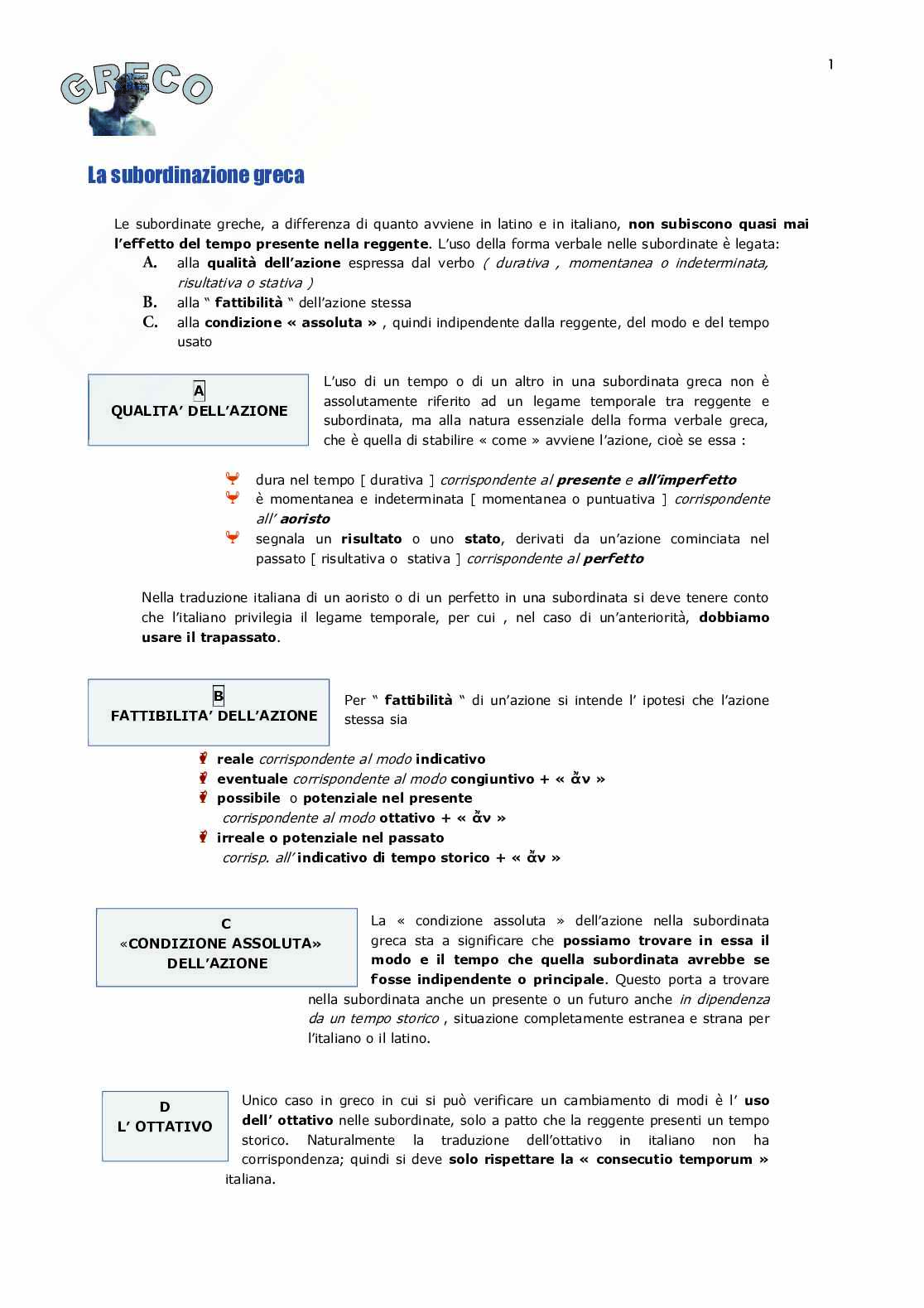 Esistono, tuttavia, in greco, caratteristiche della subordinazione particolari e tipiche, che si