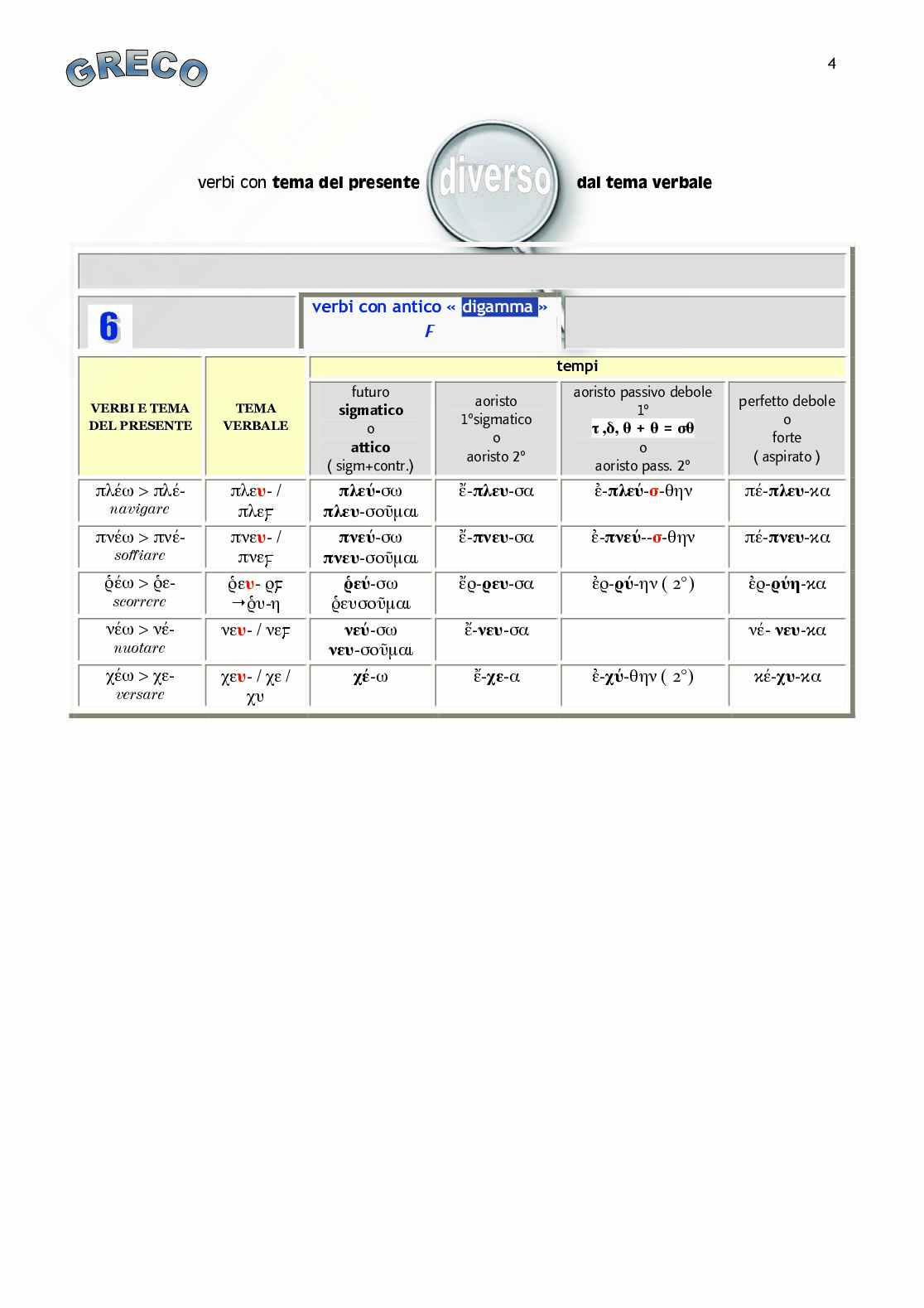PRESENTE IN futuro aoristo aoristo passivo debole perfetto debole