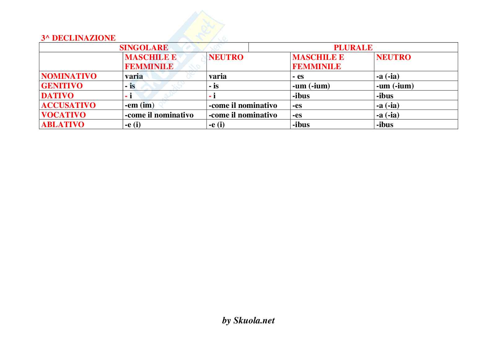 Appunto di grammatica latina che descrive le regole per la formazione della terza declinazione latina. Le regole vengono presentate nell'ambito del documento che viene allegato.