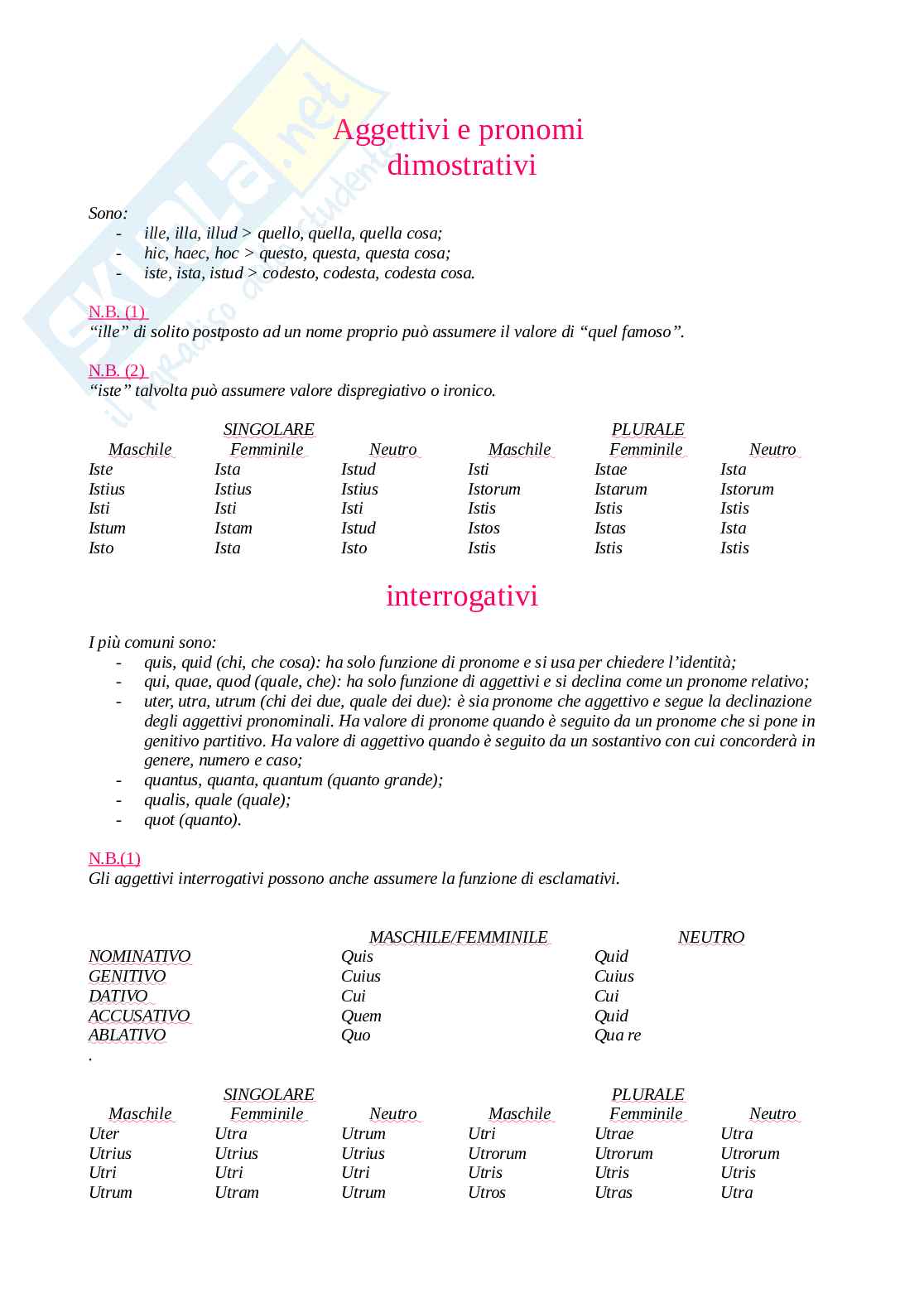 - uter, utra, utrum (chi dei due, quale dei due): è sia pronome che aggettivo e segue la declinazione