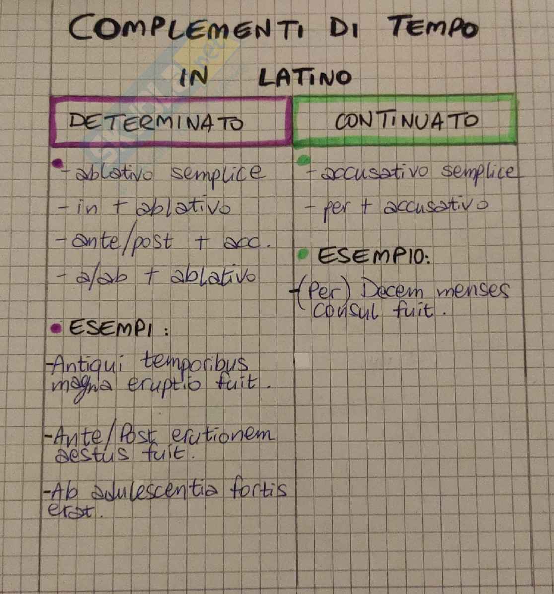 Es. Antiquo Romanorum tempore vixi – Io vissi durante l'antica epoca dei Romani.
