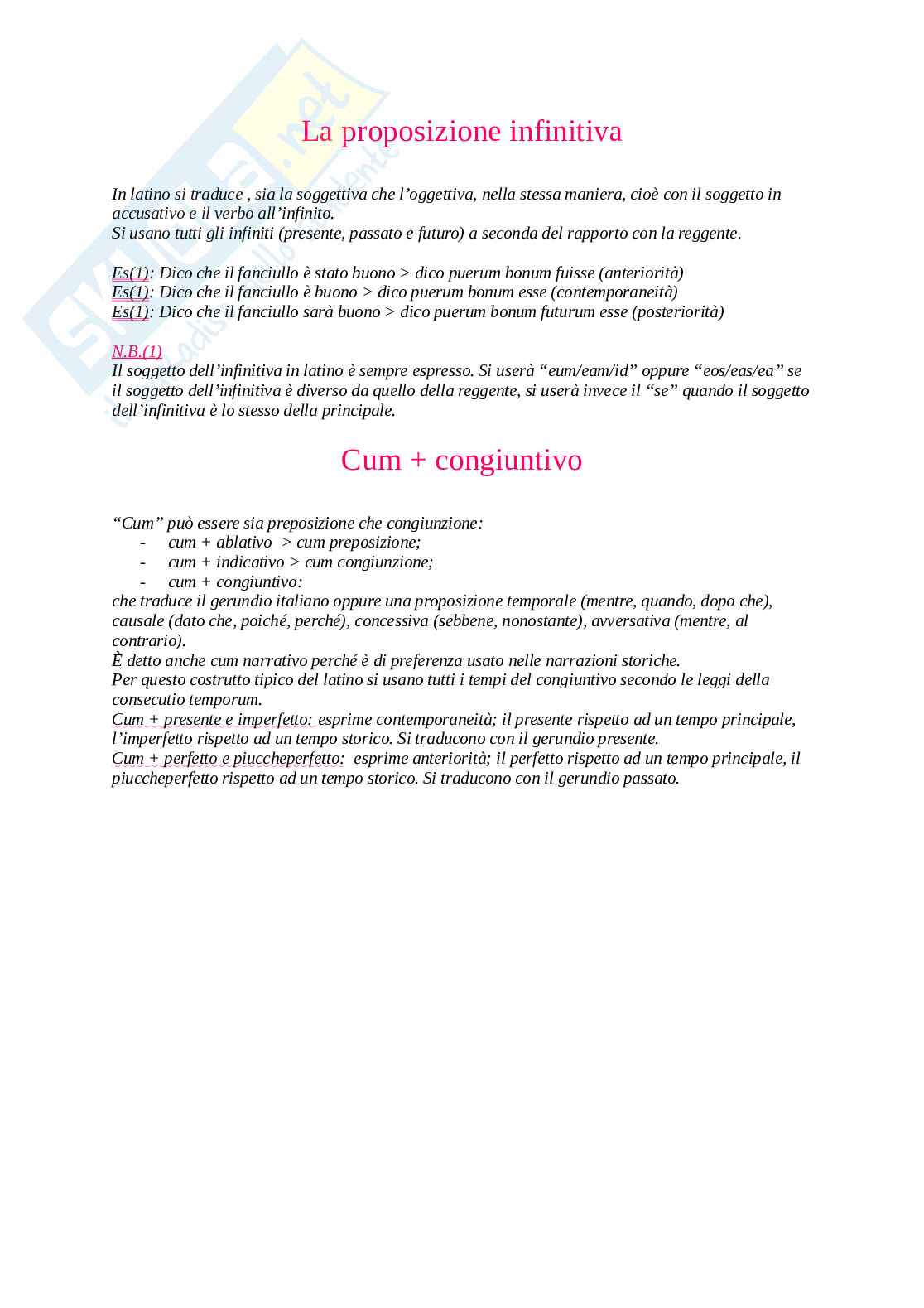 Es(1): Dico che il fanciullo è stato buono > dico puerum bonum fuisse (anteriorità)