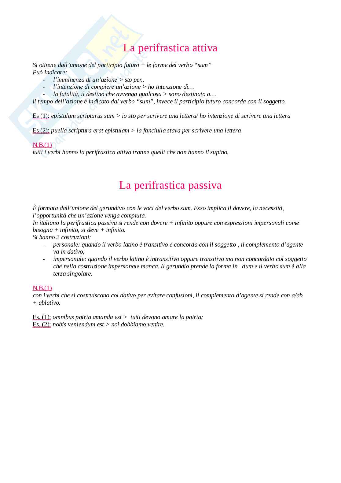 Es. (2): nobis veniendum est > noi dobbiamo venire.