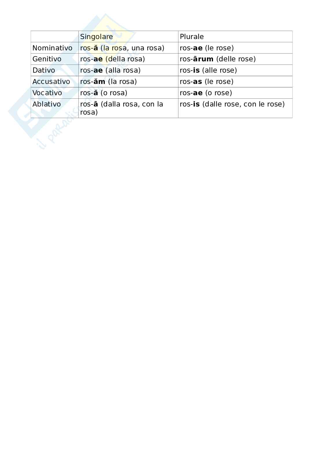 Il nominativo singolare, il vocativo singolare e l’ablativo singolare si differenziano per la quantità della vocale a:
