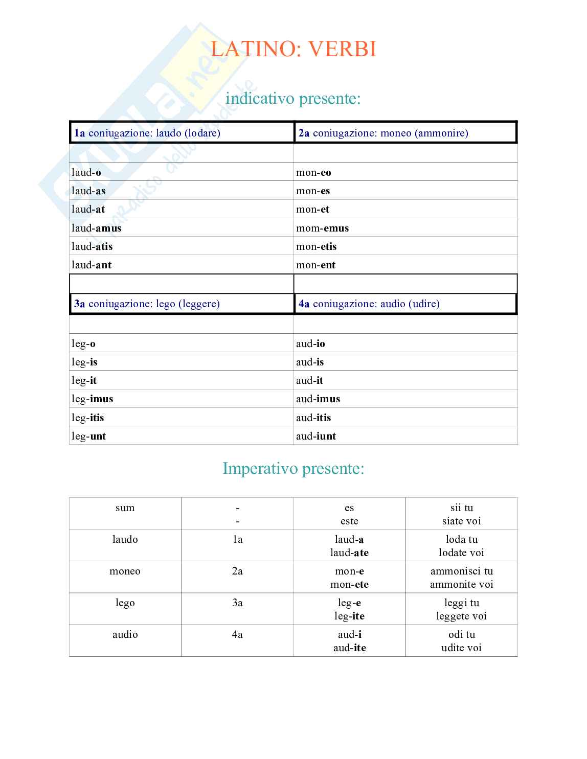 1a coniugazione: laudo (lodare) 2a coniugazione: moneo (ammonire)