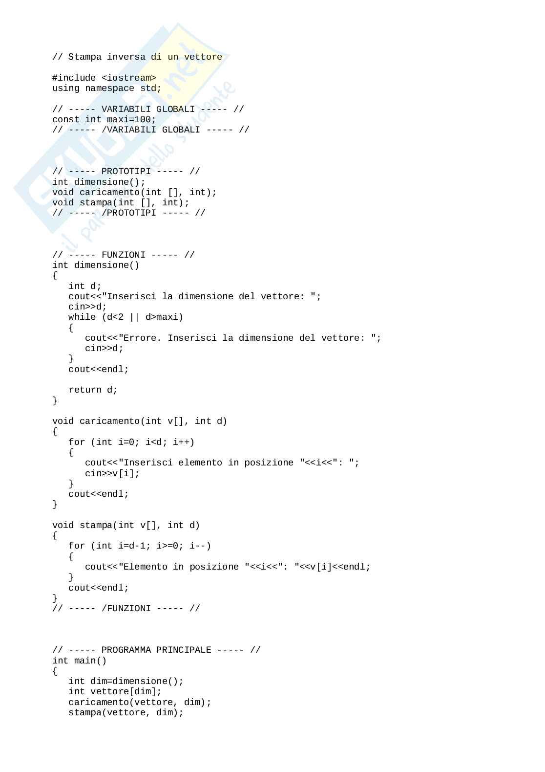 // Stampa inversa di un vettore