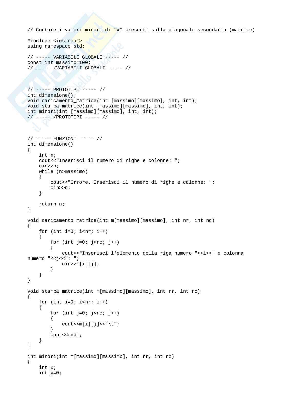 // Contare i valori minori di "x" presenti sulla diagonale secondaria (matrice)