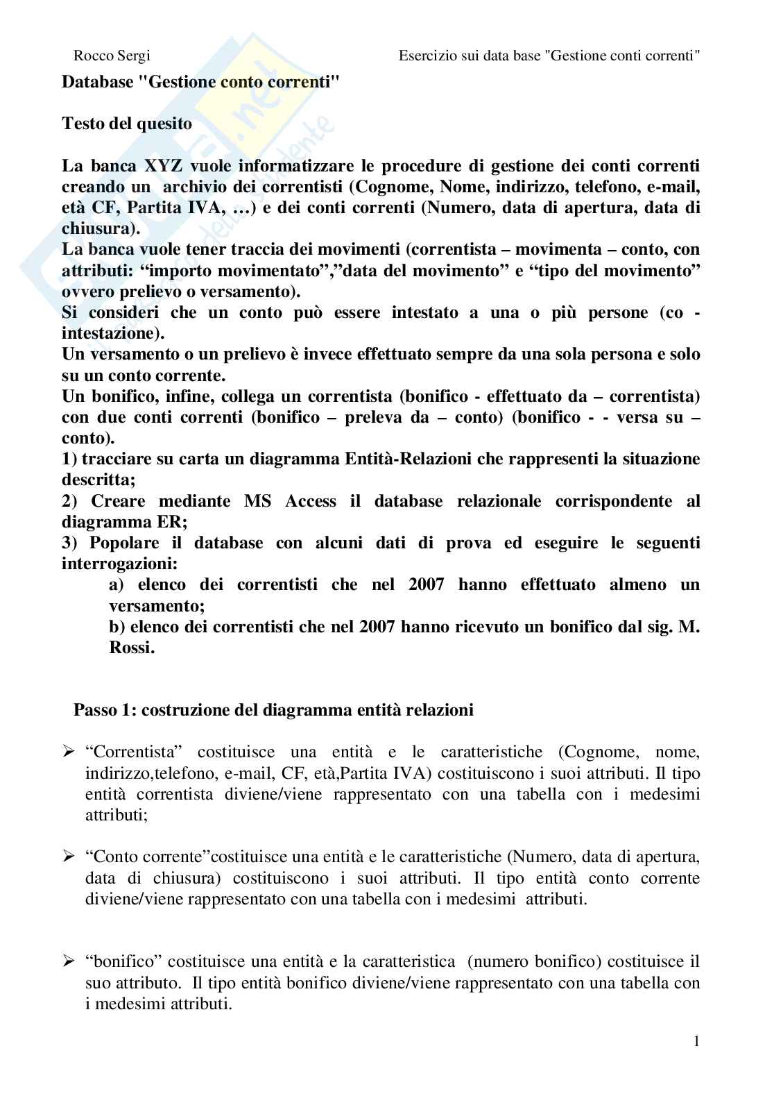 Rocco Sergi Esercizio sui data base "Gestione conti correnti"