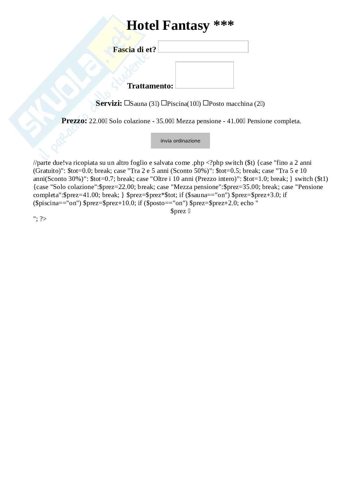 Esempio sito internet funzionamento di un albergo dove si puo inserire dei dati in base alle richiesce codice php
