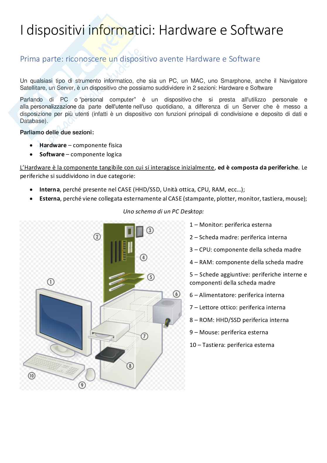 Un qualsiasi tipo di strumento informatico, che sia un PC, un MAC, uno Smarphone, anche il Navigatore Satellitare, un Server, è un dispositivo che possiamo suddividere in 2 sezioni: Hardware e Software