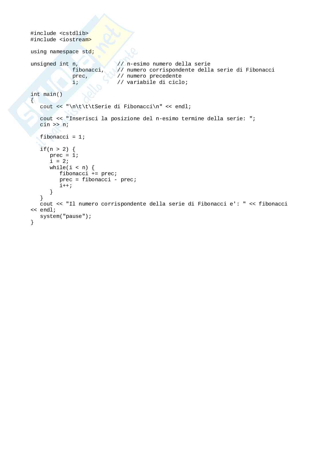 Programma per calcolare l'n-esimo termine della serie di Fibonacci.