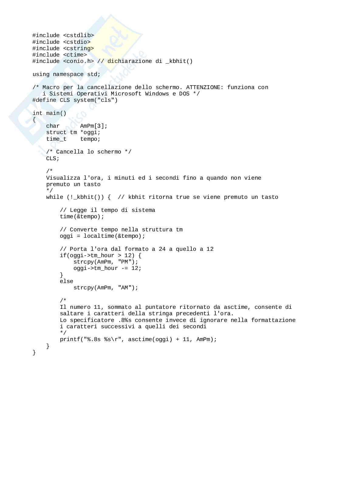 Appunto di informatica sul programma in C++ che visualizza l'ora e che viene spiegato molto attentamente nell'ambito del documento che è stato allegato all'appunto stesso.
