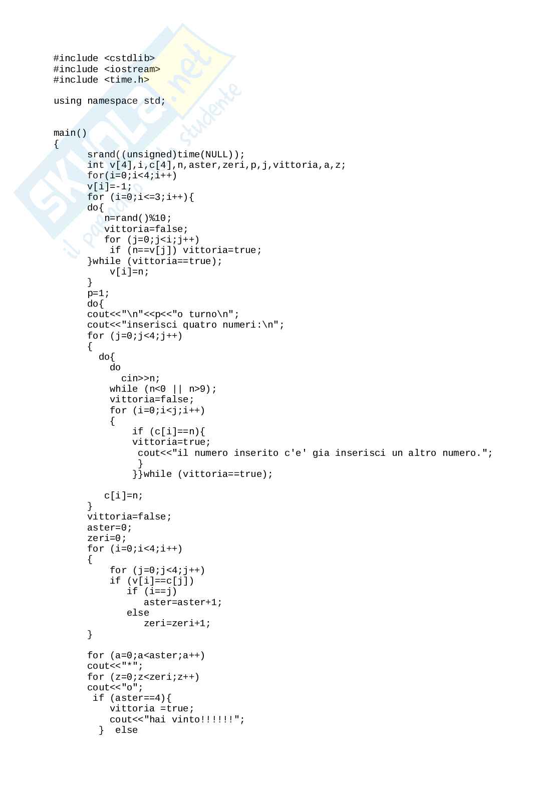 il programma vi dirà se i numeri che avete inserito fanno parte della combinazione o se sono nella posizione giusta.