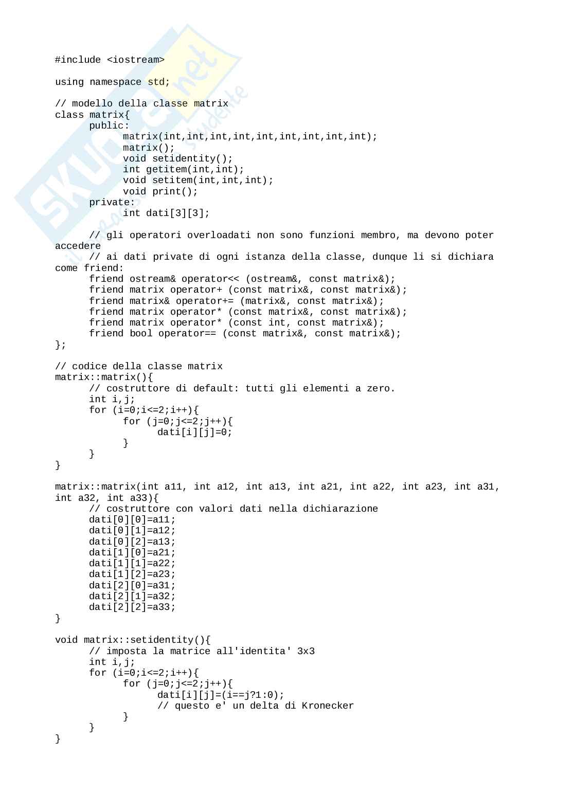 1-Due costruttori: uno senza inizializzazione (che mette a zero tutti gli elementi) e uno che permetta una dichiarazione del tipo,matrice m2(1,0,4,5,5,0,0,4,-3);