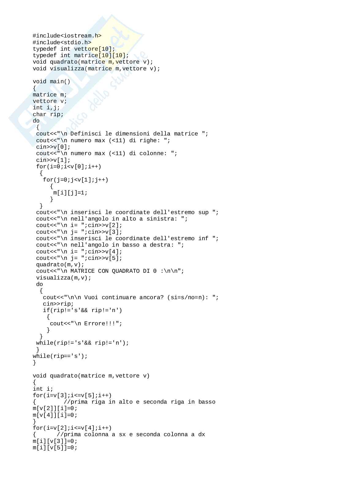 cout<<"\n MATRICE CON QUADRATO DI 0 :\n\n";