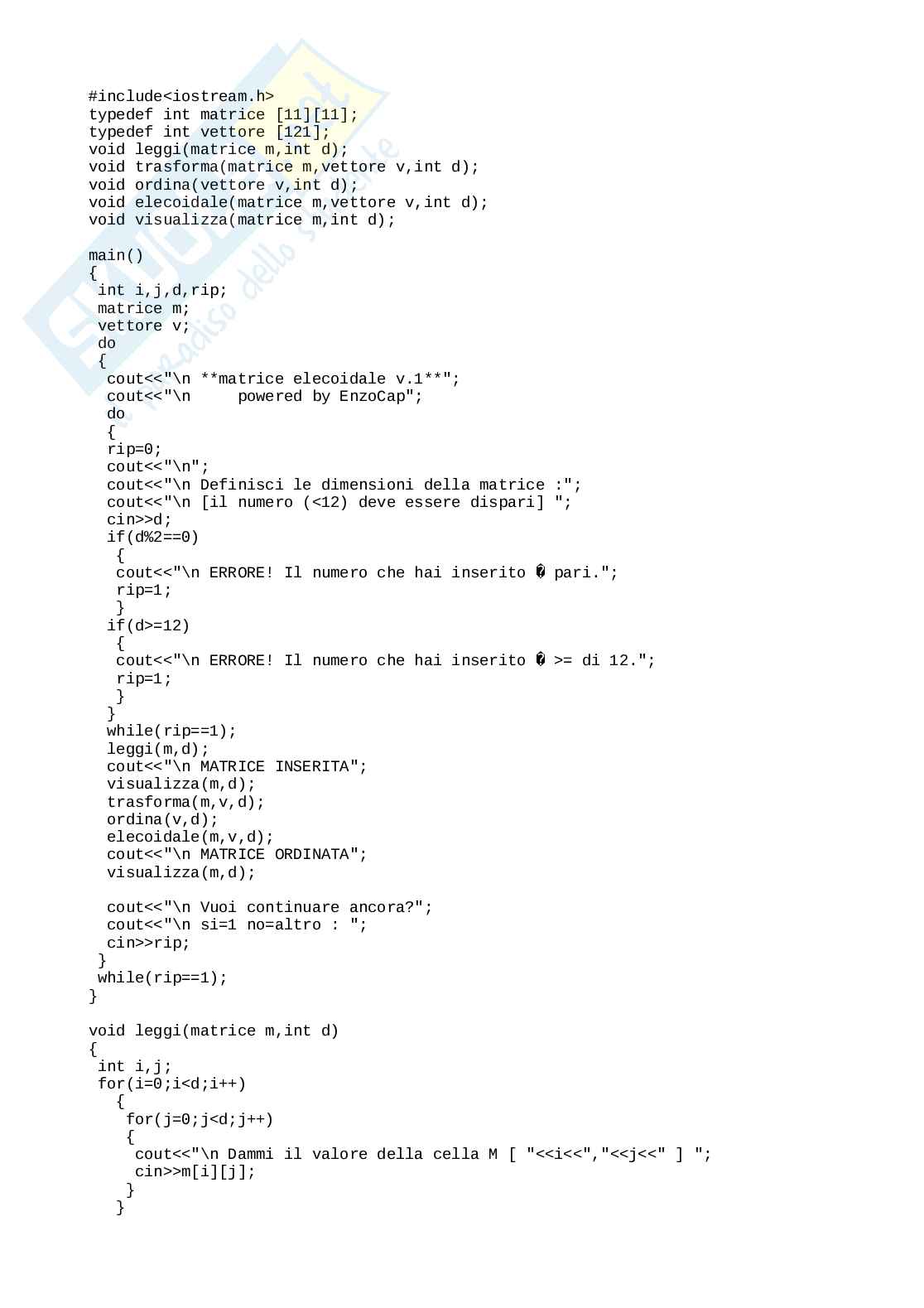 Programma che assegnata una matrice quadrata, con indice dispari, ordinarla in modo crescente o decrescente, riscrivendola in modo elecoidale.