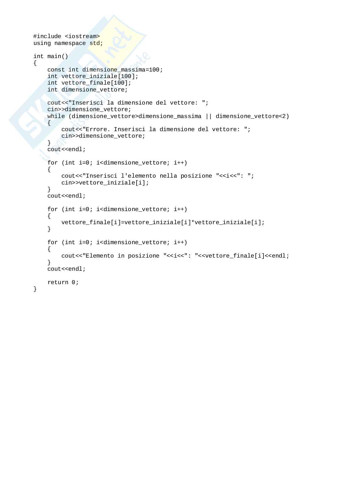 for (int i=0; i<dimensione_vettore; i++) //elevazione al quadrato