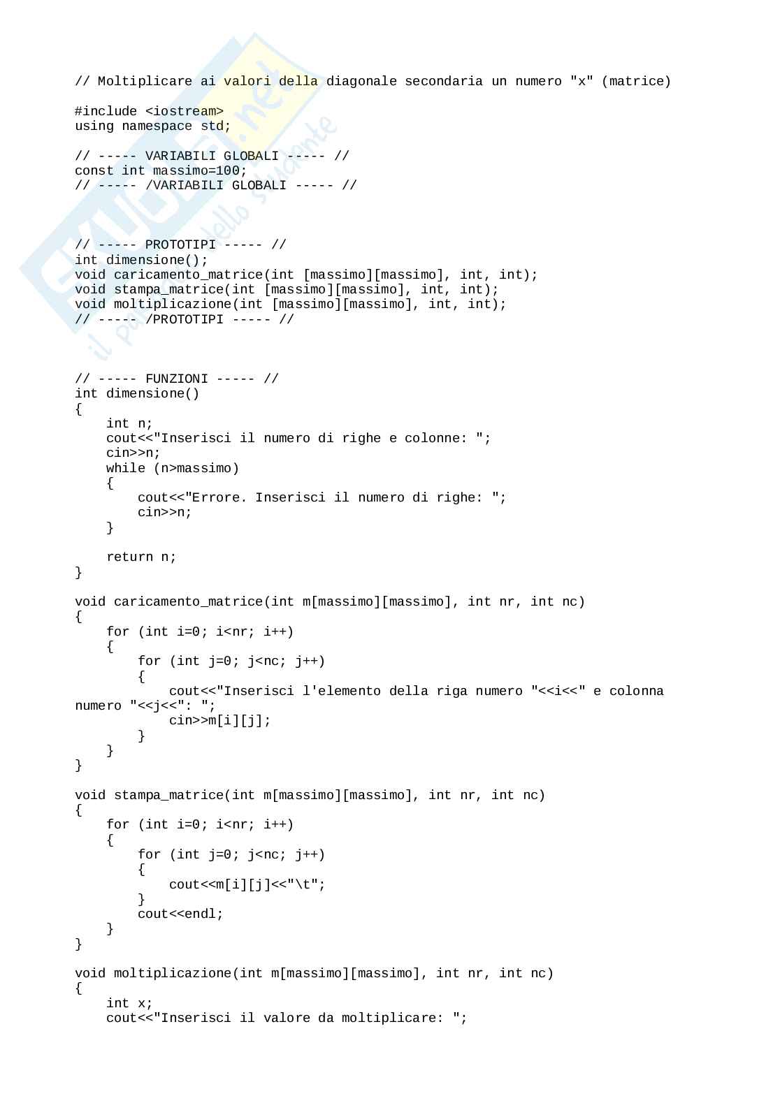 void moltiplicazione(int m[massimo][massimo], int nr, int nc)