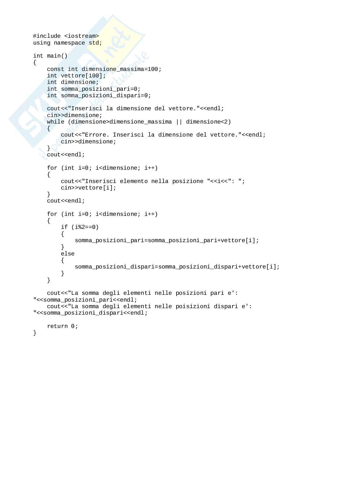 cout<<"La somma degli elementi nelle posizioni pari e': "<<somma_posizioni_pari<<endl;