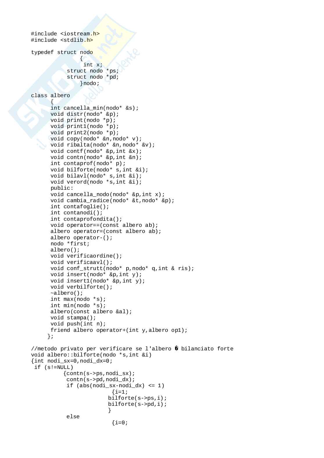 else cout<<"Albero non bilanciato avl "<<endl;