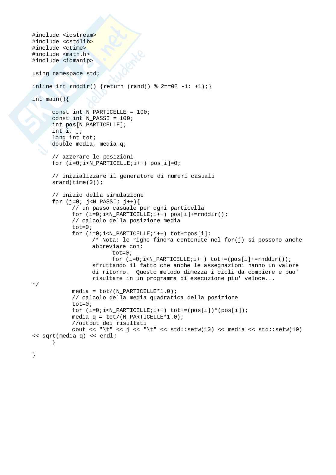 Se invece di una particella si fanno evolvere - indipendentemente - N particelle, ad ogni istante si dispone di un campione statistico (piu' ampio e', piu' accurata e' la simulazione) di cui calcola: