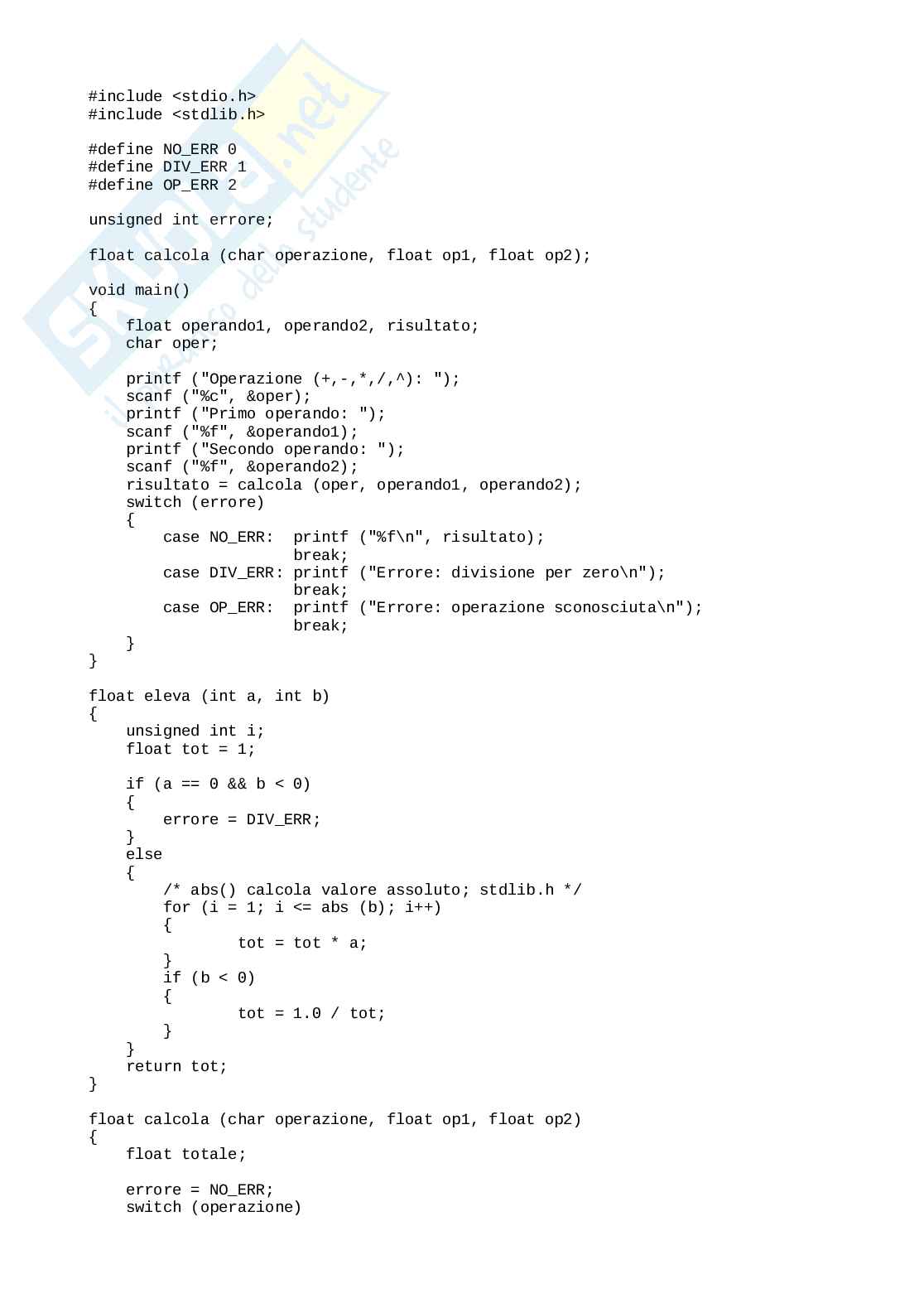 case DIV_ERR: printf ("Errore: divisione per zero\n");