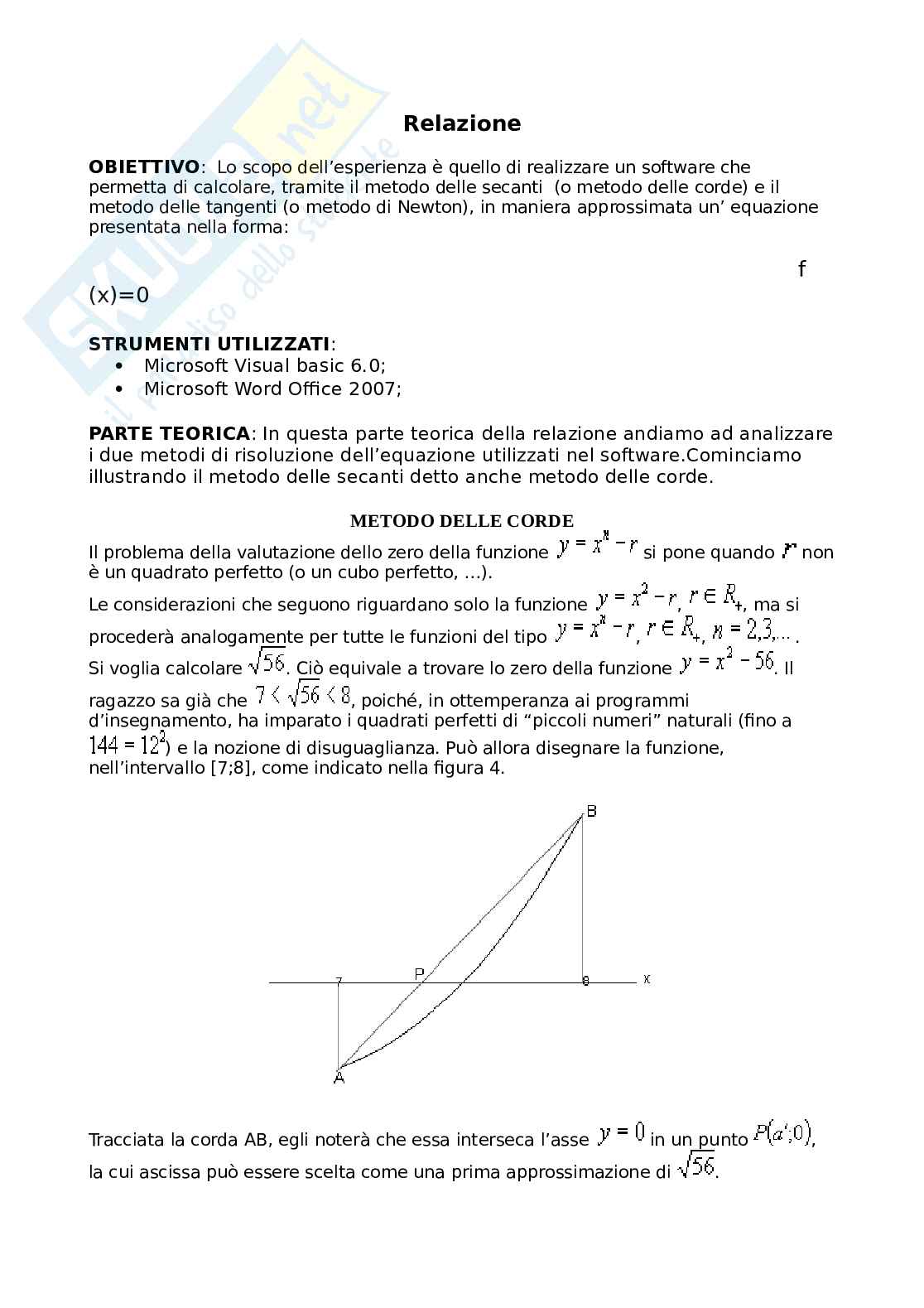 Il metodo delle corde, inoltre, per le considerazioni già esposte, si presta bene al