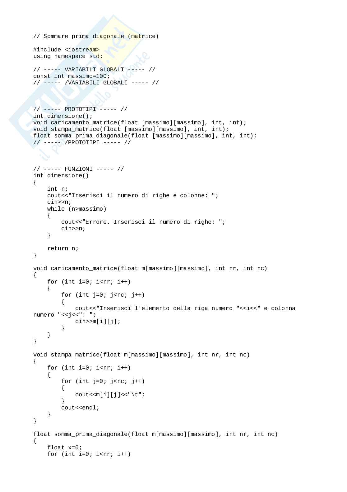 float somma_prima_diagonale(float m[massimo][massimo], int nr, int nc)