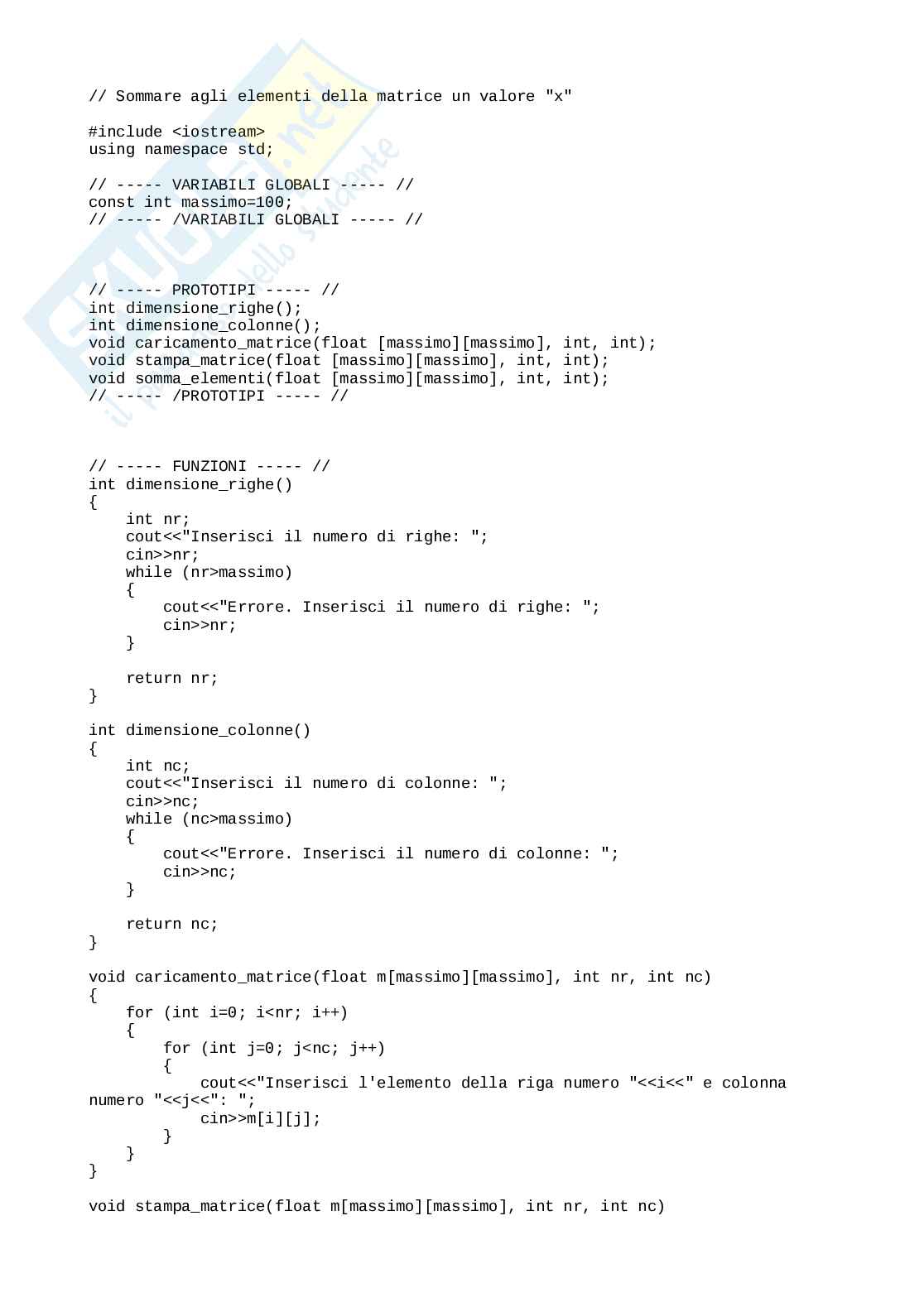void somma_elementi(float m[massimo][massimo], int nr, int nc)