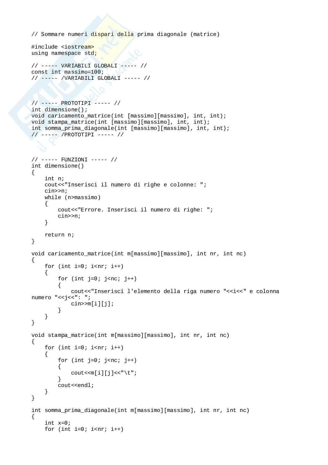 int somma_prima_diagonale(int m[massimo][massimo], int nr, int nc)