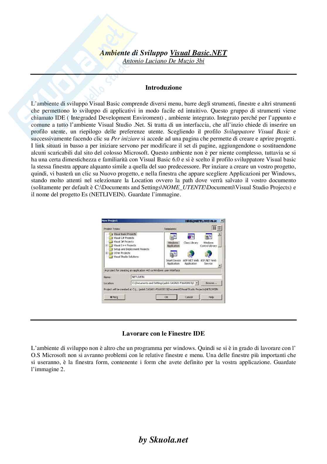 comune a tutto l’ambiente Visual Studio .Net. Si tratta di un interfaccia, che all’inzio chiede di inserire un