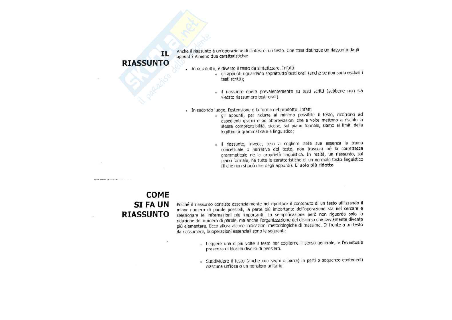Nelle dispense si trattano più in specifico il riassunto, il testo argomentativo, il saggio breve e l'articolo di giornale.