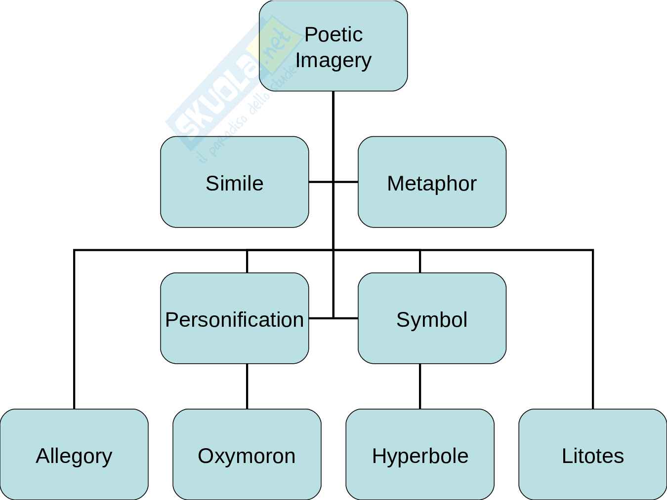 Poetic imagery: simile, metaphor, personification, symbol, allegory, oxymoron, hyperbole, litotes (definizioni e mappe concettuali).