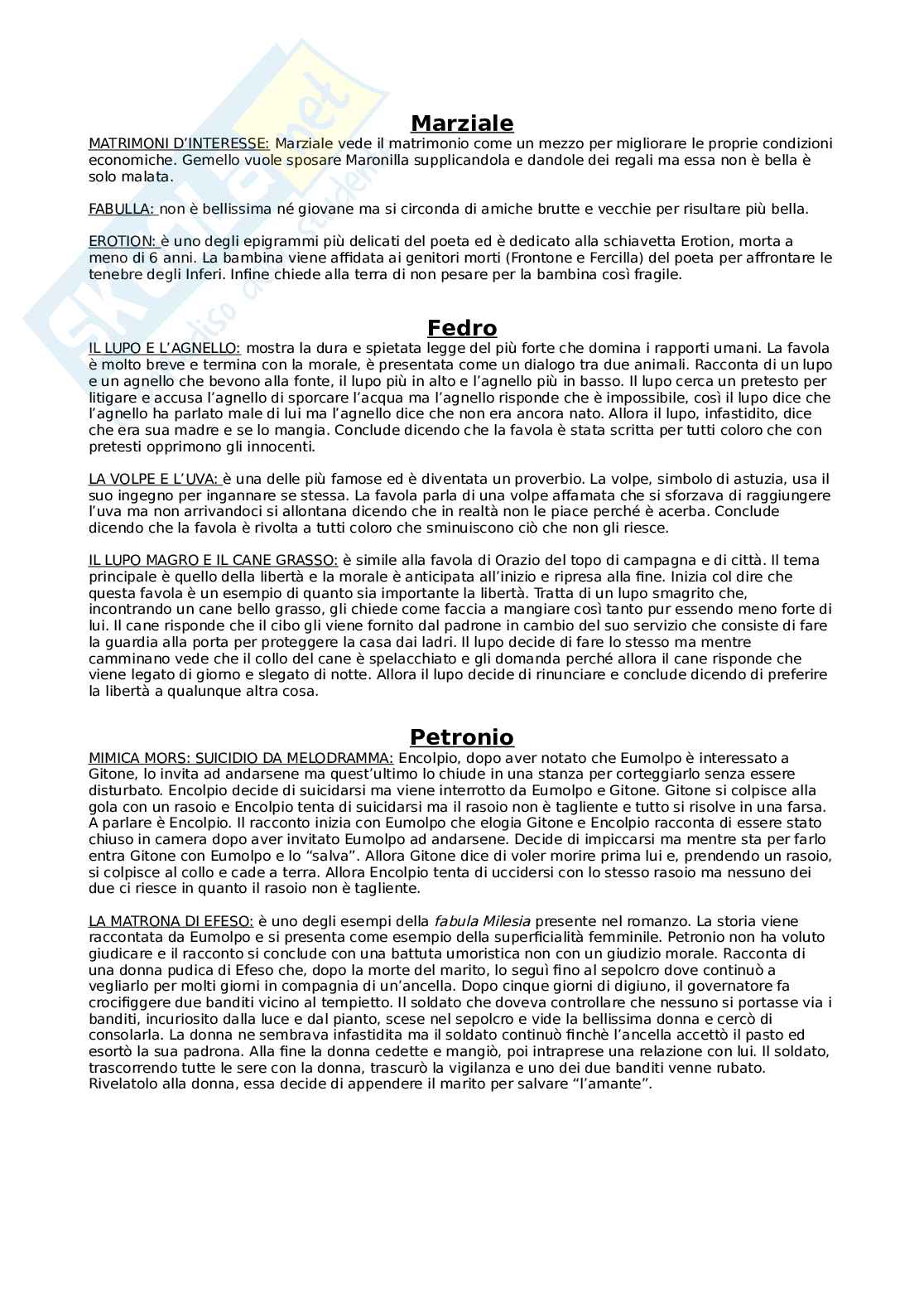 IL LUPO MAGRO E IL CANE GRASSO: è simile alla favola di Orazio del topo di campagna e di città. Il tema principale è quello della libertà e la morale è anticipata all’inizio e ripresa alla fine. Inizia col dire che questa favola è un esempio di quanto sia importante la libertà. Tratta di un lupo smagrito che, incontrando un cane bello grasso, gli chiede come faccia a mangiare così tanto pur essendo meno forte di lui. Il cane risponde che il cibo gli viene fornito dal padrone in cambio del suo servizio che consiste di fare la guardia alla porta per proteggere la casa dai ladri. Il lupo decide di fare lo stesso ma mentre camminano vede che il collo del cane è spelacchiato e gli domanda perché allora il cane risponde che viene legato di giorno e slegato di notte. Allora il lupo decide di rinunciare e conclude dicendo di preferire la libertà a qualunque altra cosa.