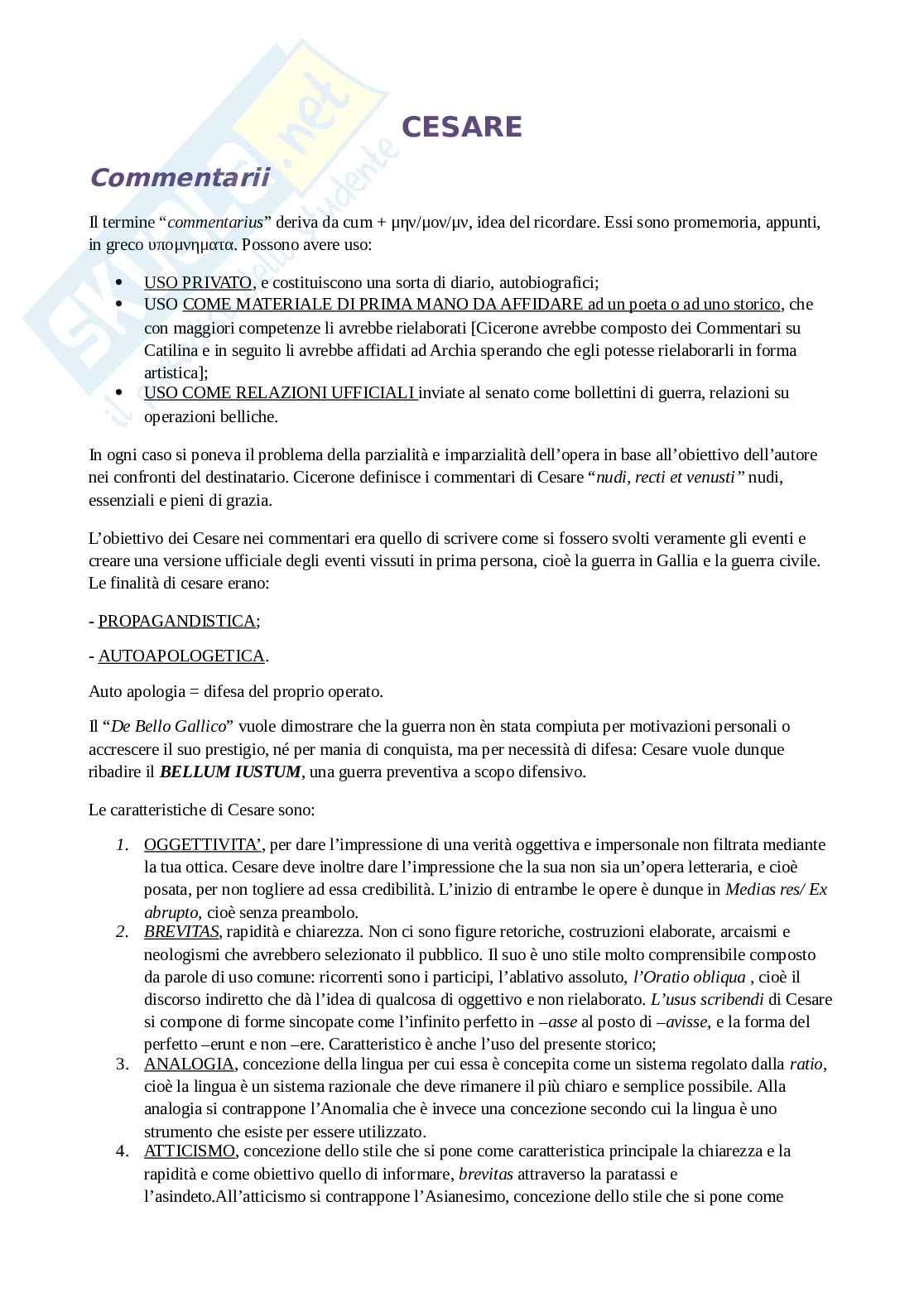 1. oggettività, per dare l’impressione di una verità oggettiva e impersonale non filtrata mediante la tua ottica. Cesare deve inoltre dare l’impressione che la sua non sia un’opera letteraria, per non togliere ad essa credibilità. L’inizio di entrambe le opere è dunque in medias res / ex abrupto, cioè senza preambolo.