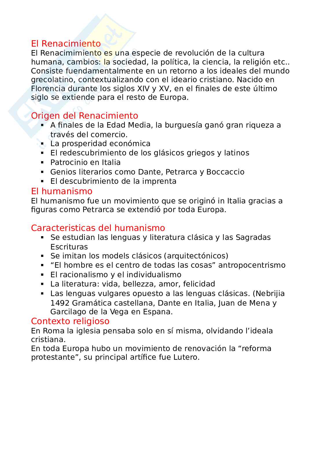 Consiste fuendamentalmente en un retorno a los ideales del mundo grecolatino, contextualizando con el ideario cristiano. Nacido en Florencia durante los siglos XIV y XV, en el finales de este último siglo se extiende para el resto de Europa.