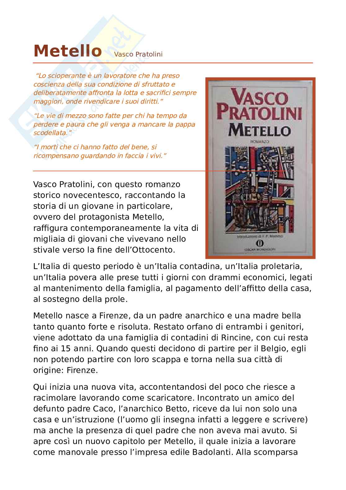 Per approfondimenti sul romanzo “Metello” di Vasco Pratolini vedi anche qua