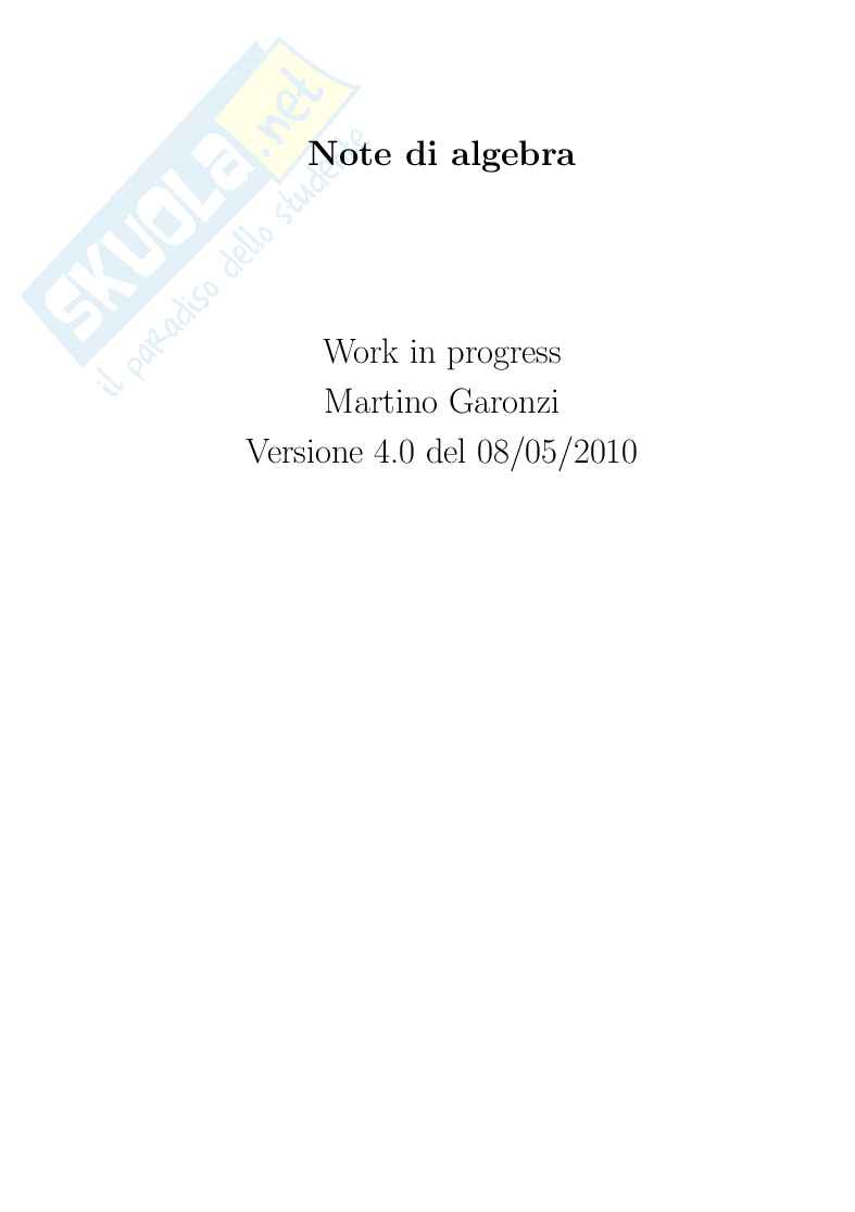 Appunti di Algebra per l'università: Gruppi, Categorie, Campi e Teoria di Galois, Topologia e applicazioni algebriche. Un book in progress sui principali argomenti di algebra con esempi ed esercizi.
