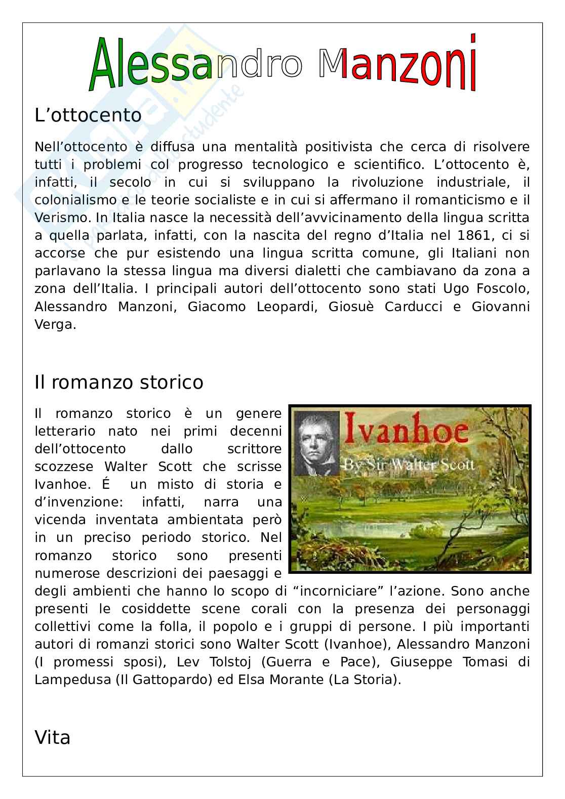 autori di romanzi storici sono Walter Scott (Ivanhoe), Alessandro Manzoni