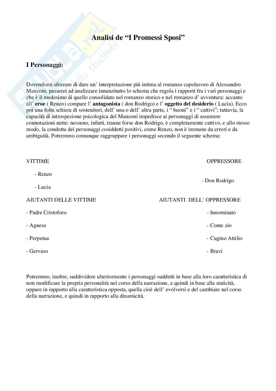 Manzoni, passerei ad analizzare innanzitutto lo schema che regola i rapporti fra i vari personaggi e