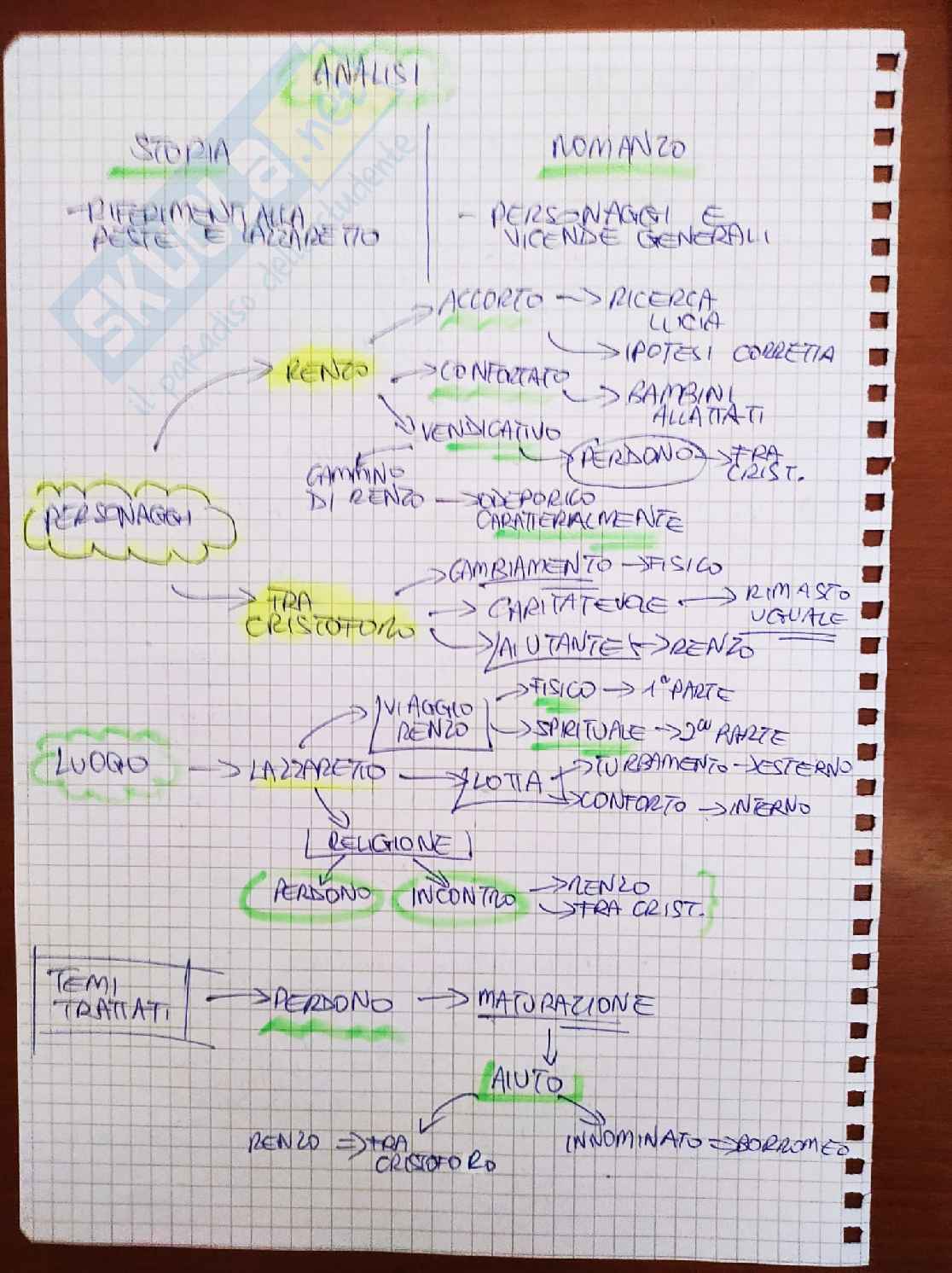- fra Cristoforo, che dalla descrizione del narratore si presenta molto cambiato a livello esteriore (infatti porta indelebili i segni della peste), ma a livello interiore è rimasto lo stesso, visto anche il suo impegno per i bisognosi; inoltre, egli si dimostra un aiutante nei confronti del personaggio di Renzo, poiché cambia la sua prospettiva con un intervento a dir poco fondamentale e lo prepara al perdono.