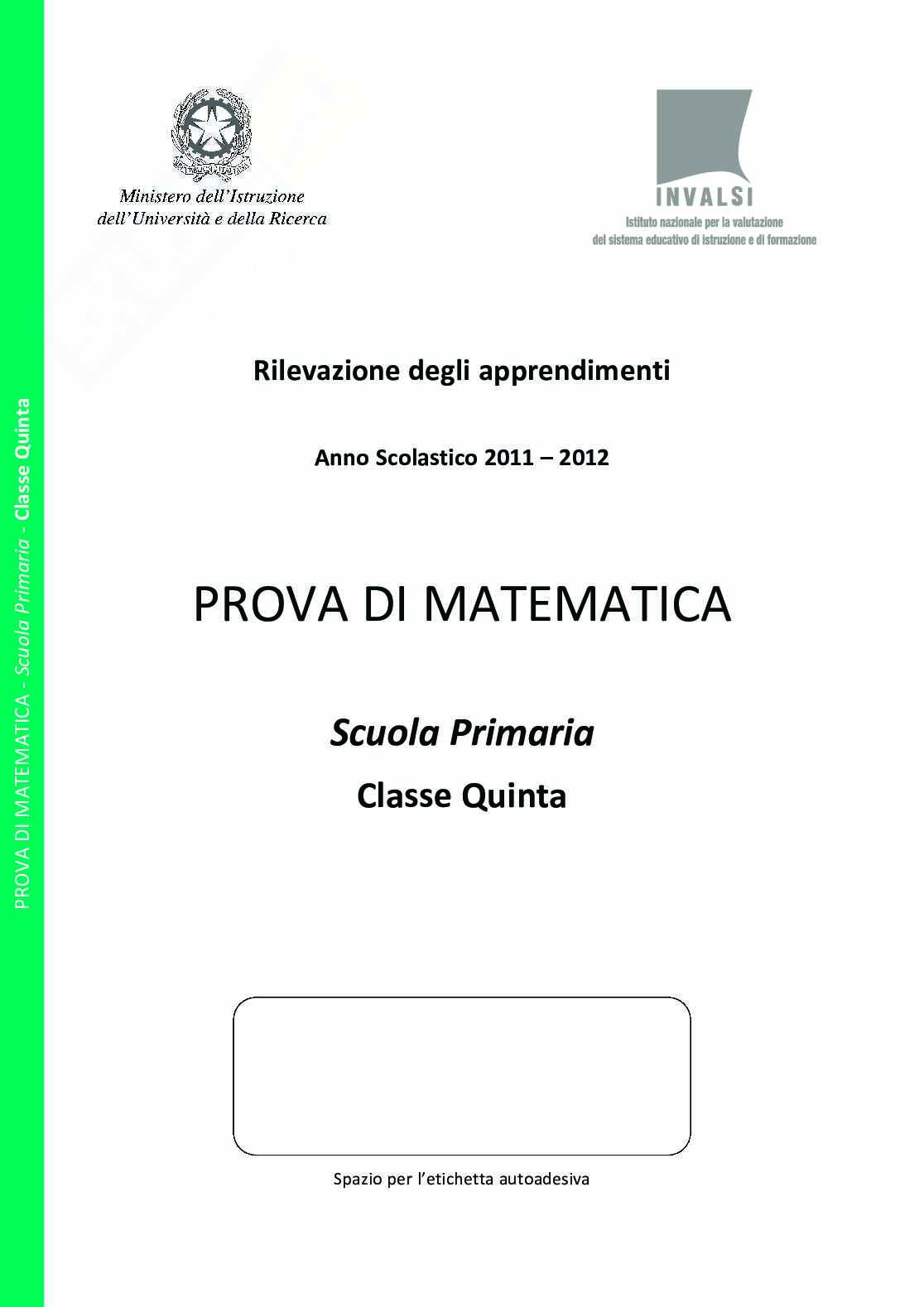Prova INVALSI per la classe quinta della scuola primaria anno scolastico 2011-2012, prova di matematica, problemi con le operazioni, riconoscimento di figure piane, piano cartesiano, calcolo mentale, operazioni inverse, serie numeriche, statistica e rappresentazione tabulare di dati, probabilità... Scarica il test originale nel formato PDF