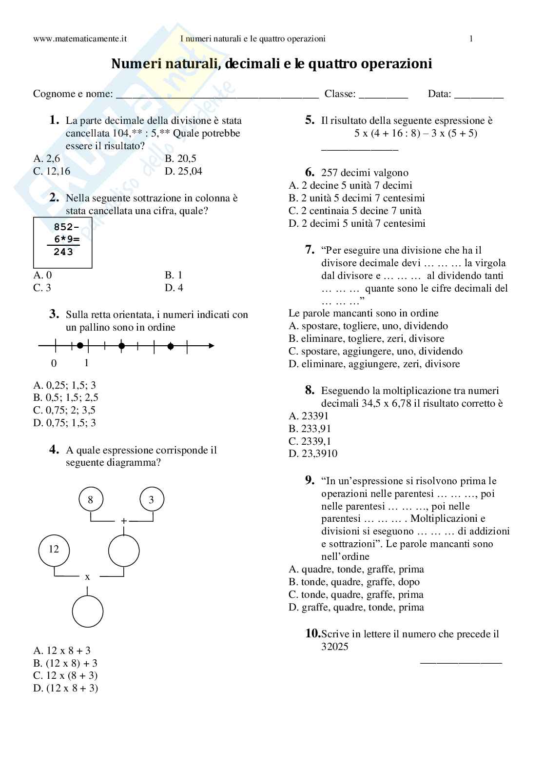 Numeri naturali, decimali e le quattro operazioni