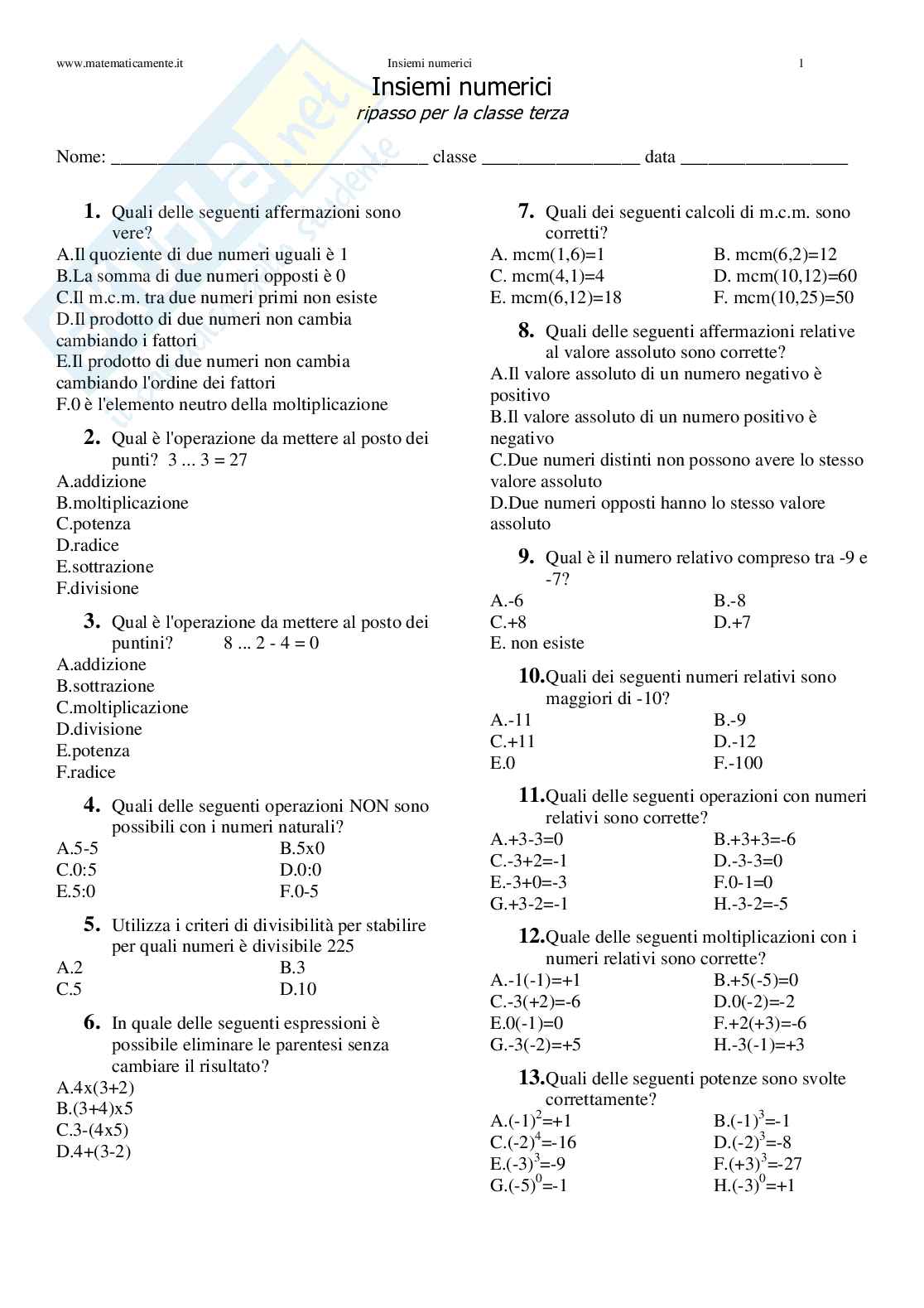 A.addizione 10. Quali dei seguenti numeri relativi sono