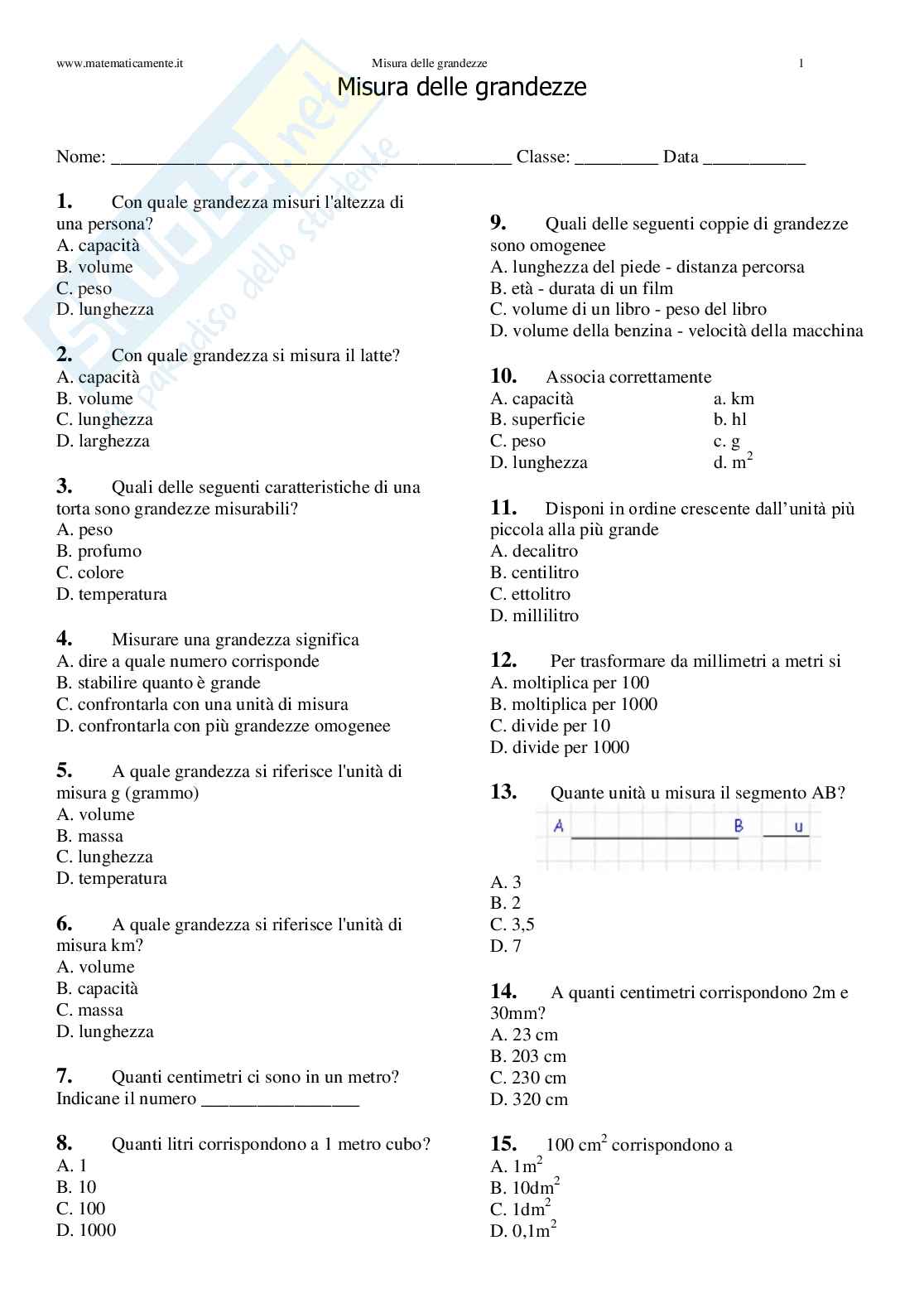 21. Quali delle seguenti eguaglianze sono 27. Con quale unità di misura si esprime