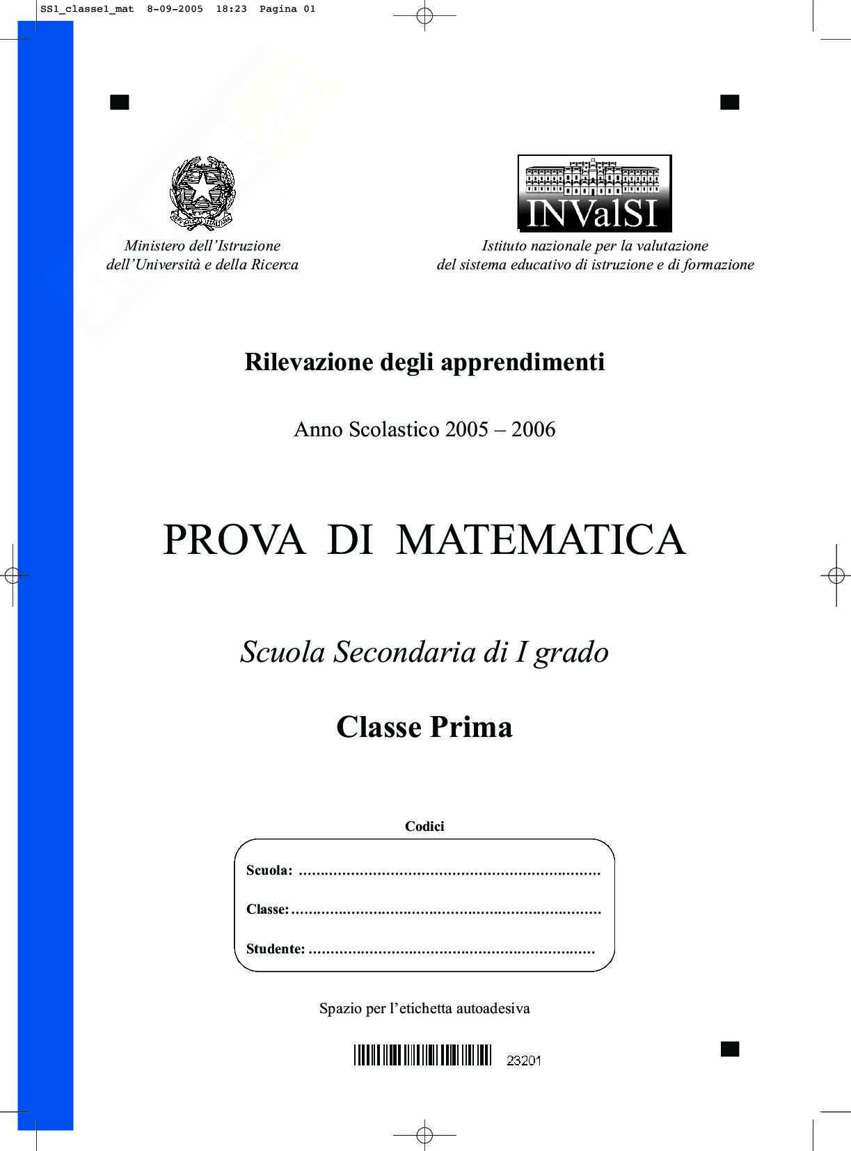 Prova invalsi di matematica classe prima 2006