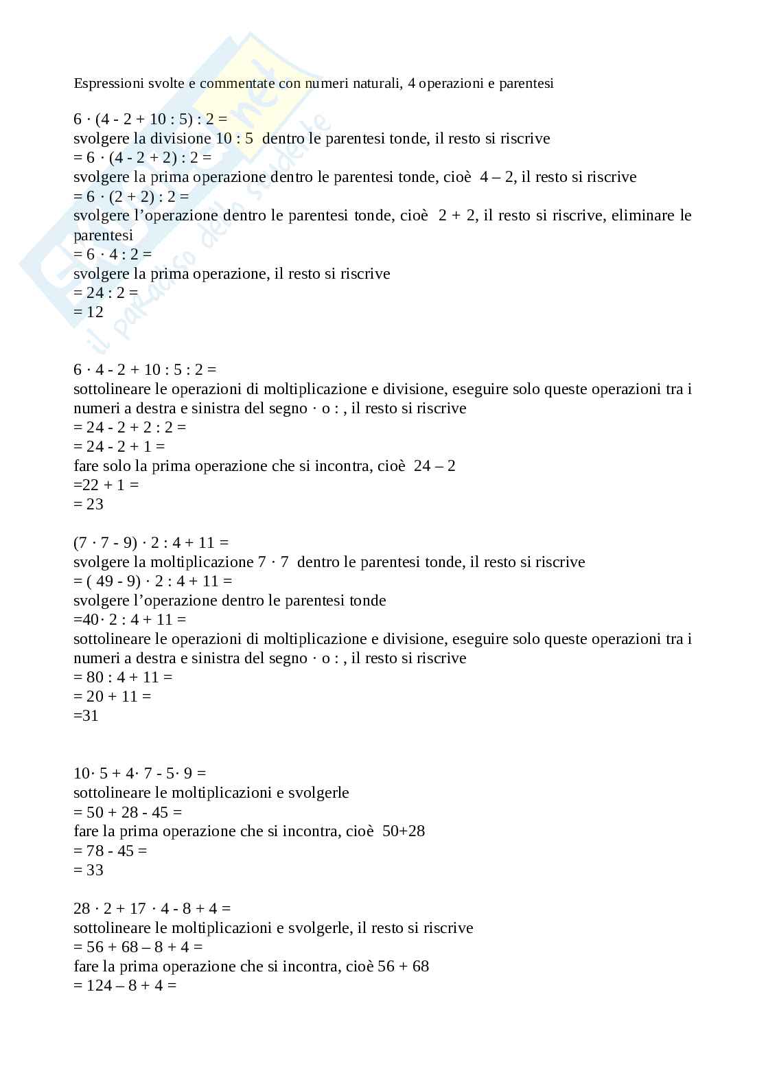 Espressioni svolte e commentate con numeri naturali, 4 operazioni e parentesi